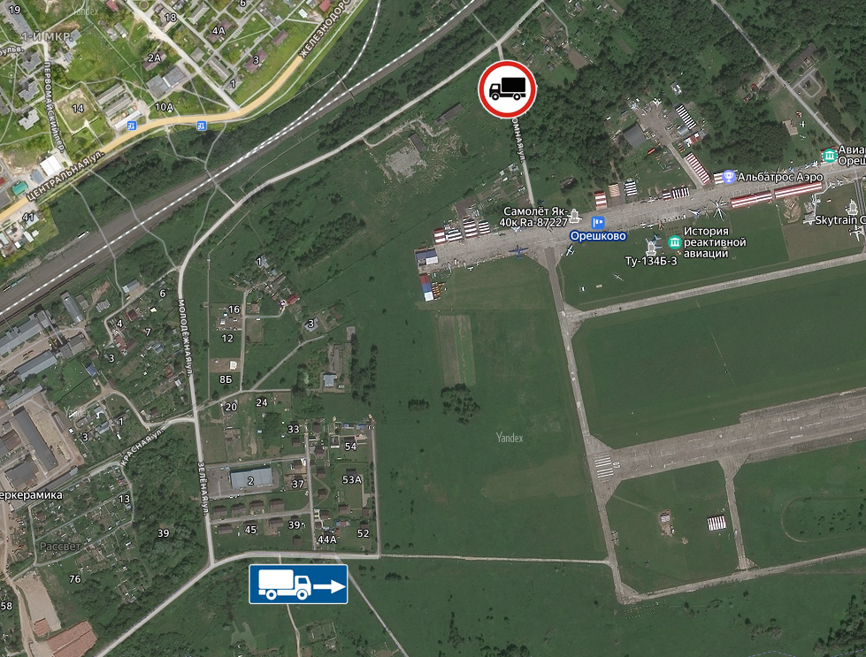 Через Аэродромную улицу исключительно легковые машины. Грузовой транспорт через отдельный въезд. Для организации въезда через грузовые ворота просьба заранее связываться с комендантом аэродрома по телефону +7 916 060-94-04